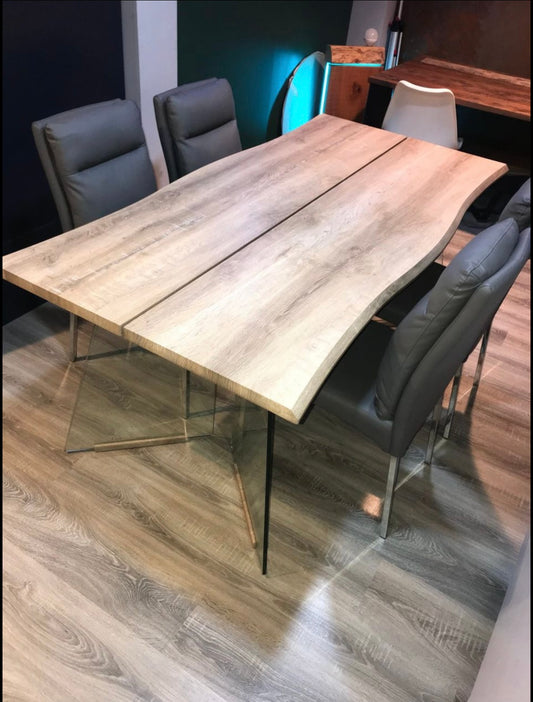 Adrian - Tavolo impiallacciato di rovere e gambe in vetro temperato