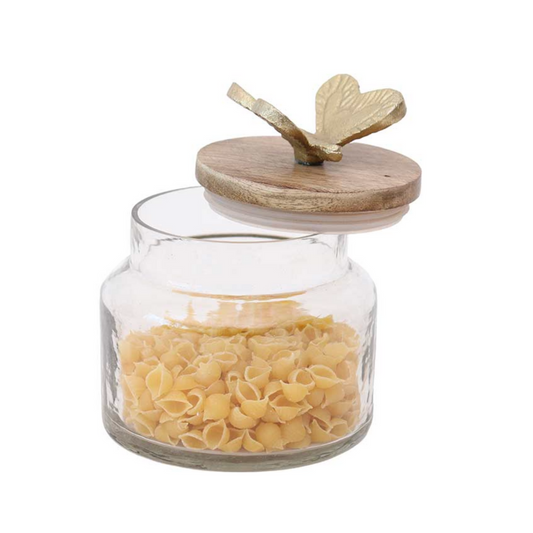 Barattolo in vetro con tappo in legno e farfalla - Tre Misure