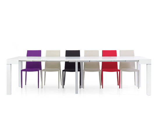 Willy - Tavolo con top in vetro bianco e gambe in metallo