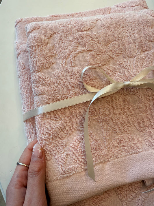 Coppia di asciugamani - Jacquard con fiori Rosa