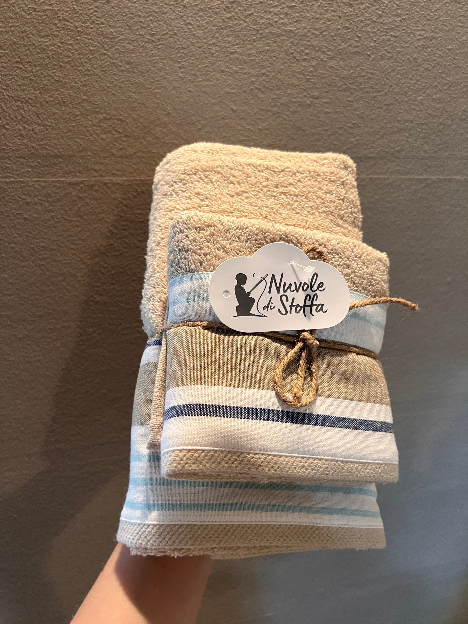 Coppia di asciugamani tortora - Cuoricini