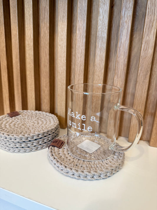 Set di 4 sottobicchieri in corda intrecciata 100% cotone color tortora