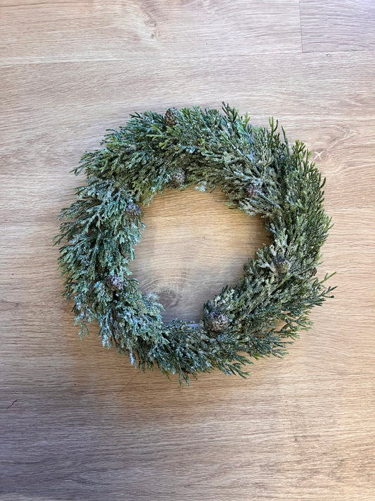 Corona di cipresso innevata con pignette - diam. 30 cm