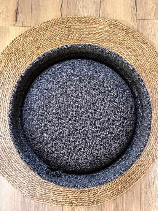 Duo - Set di due Pouf contenitori in tessuto con vassoio in legno