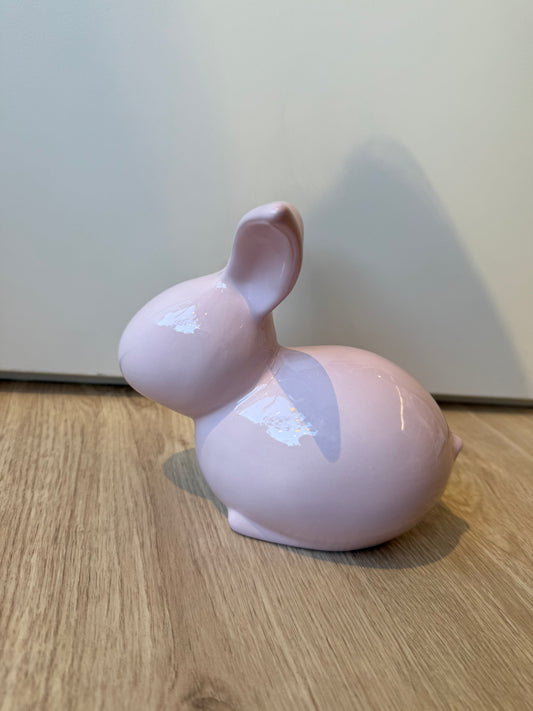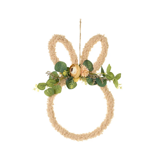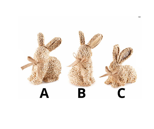 Decorazione coniglietto in fibra vegetale intrecciata con fiocco in juta