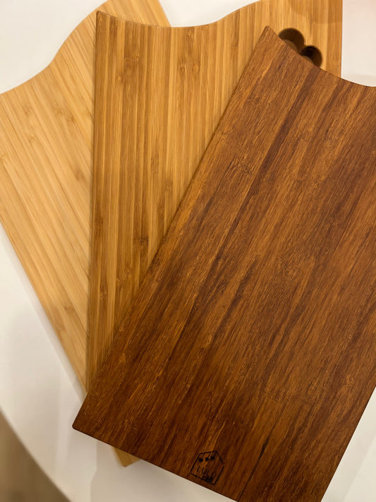Tagliere lungo a forma di arco in legno di bambù tinta caramello