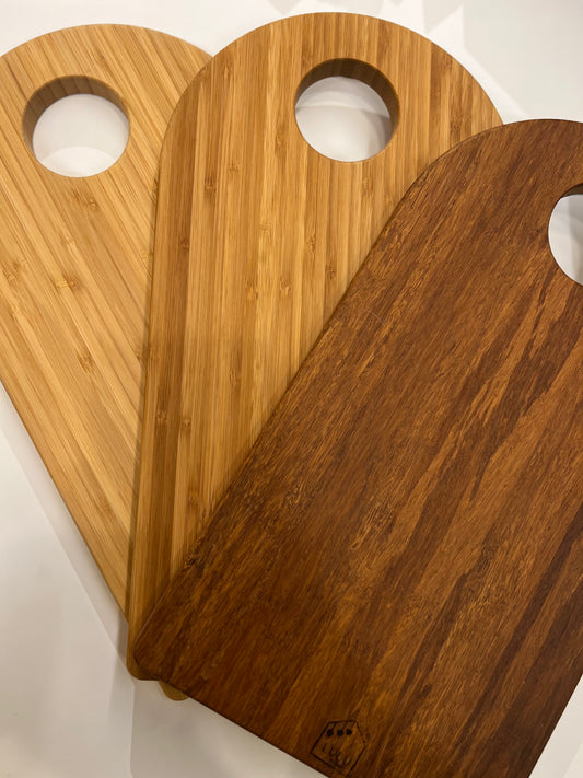 Tagliere con cuore in legno di bambù tinta caramello
