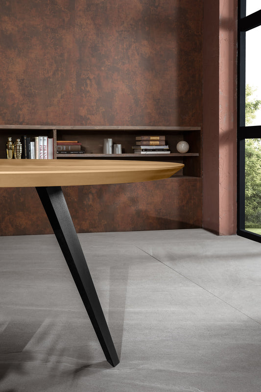 Oscar- Tavolo impiallacciato di rovere e gambe in metallo