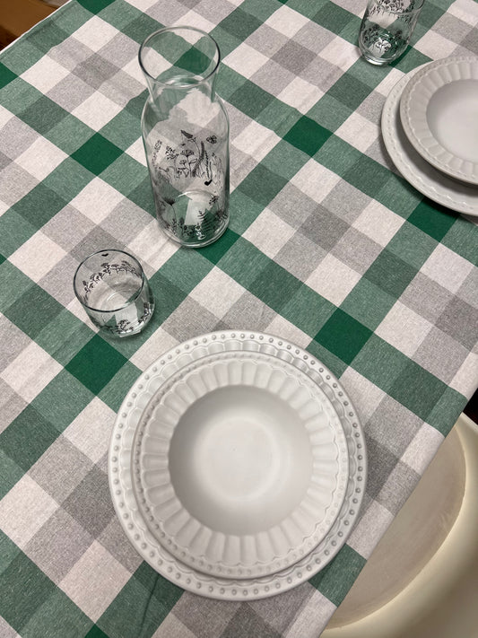 Ary - Tovaglia fantasia vichy verde e gialla in cotone
