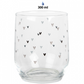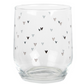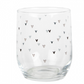 Bicchiere in vetro con tenera grafica nera di cuoricini. Ideale per decorare la tavola con un tocco di romanticismo.