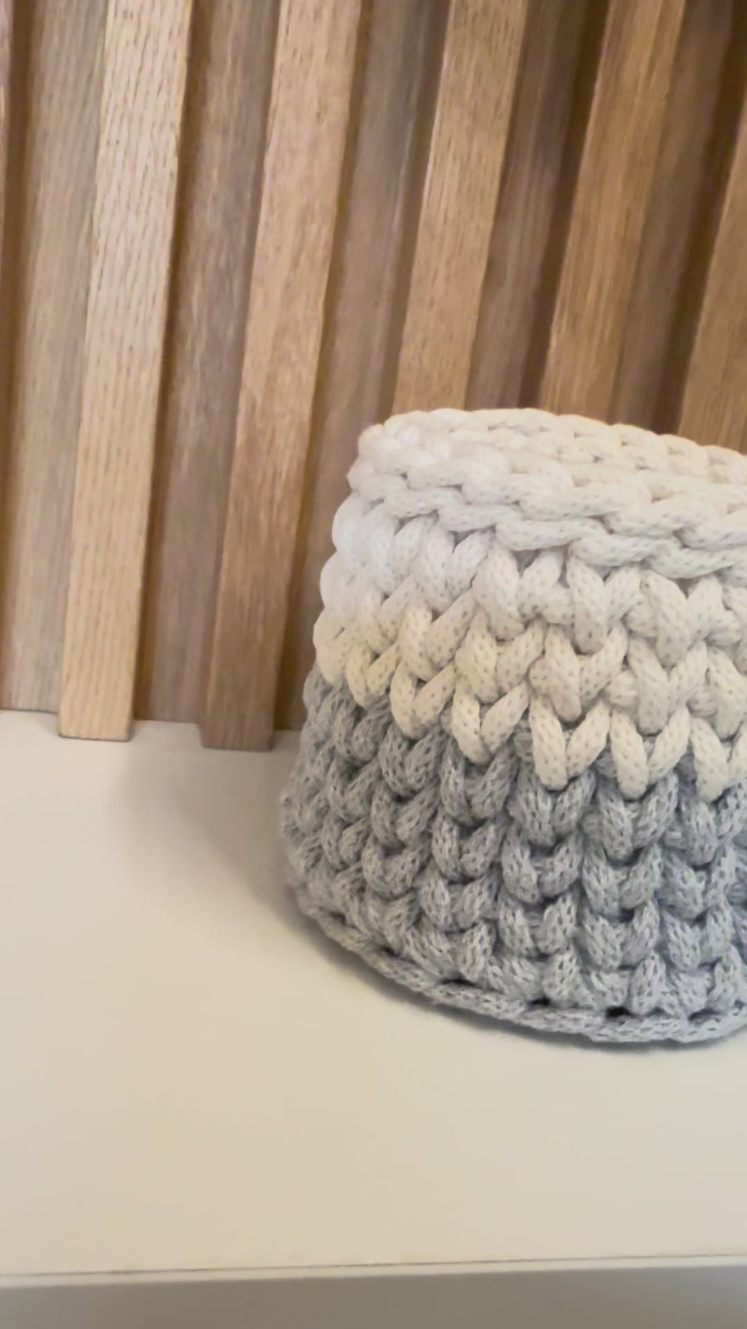 Cestino con base in legno e realizzato con corda intrecciata in 100% cotone da 5 mm con due colori azzurro e panna. Il cotone è certificato OEKO - TEX e realizzato interamente a mano con cura e passione. Ogni cestino è un pezzo unico, lavorato all’uncinetto con filati morbidi e delicati, perfetto per donare un tocco romantico e artigianale ad ogni angolo della tua casa, ideale in bagno come organizer, in tavola per riporre il pane, in camera da letto.