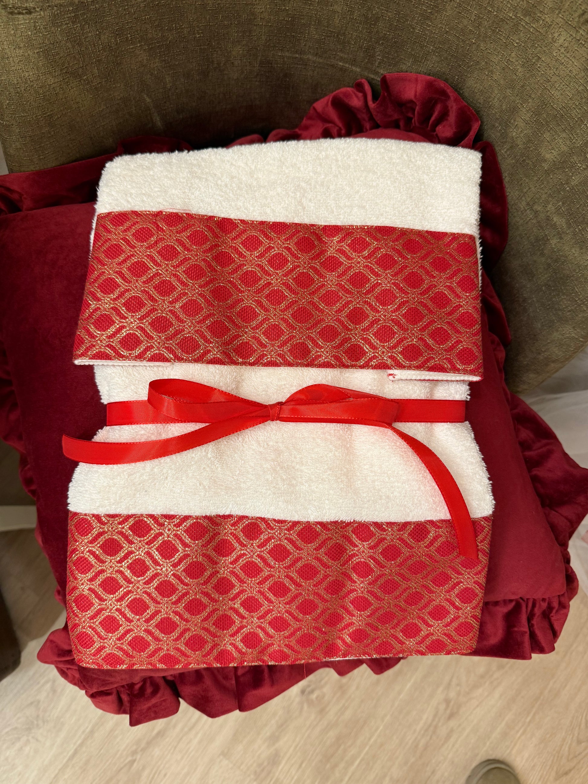 Coppia di asciugamani bianchi - Balza rossa in lurex