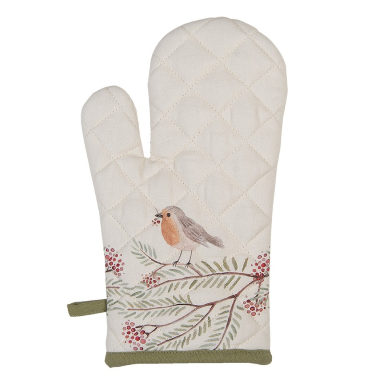 Guanto da forno con un adorabili pettirossi, realizzato in cotone. Questo design originale si abbina perfettamente ad altri tessili della stessa serie. Un elemento indispensabile in ogni cucina