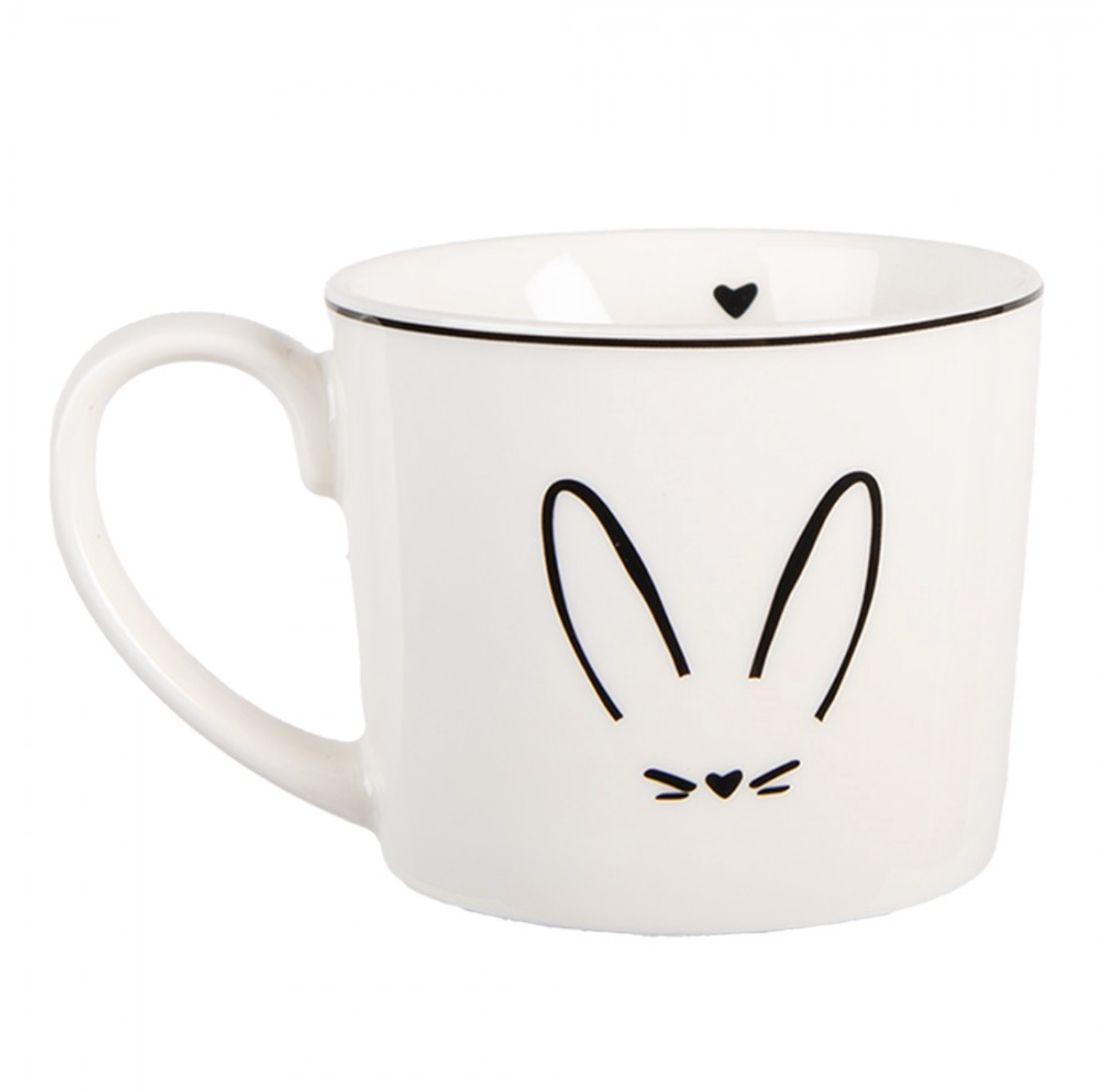 Tazza in ceramica con coniglietto stilizzato e cuoricino, ideale per sorseggiare la tua bevanda preferita in relax.