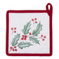 Presina in cotone bianco con adorabile stampa di un agrifoglio e bordo rosso.  Ideale per rendere unica la tua cucina, perfetta da abbinare al suo guantone da forno.