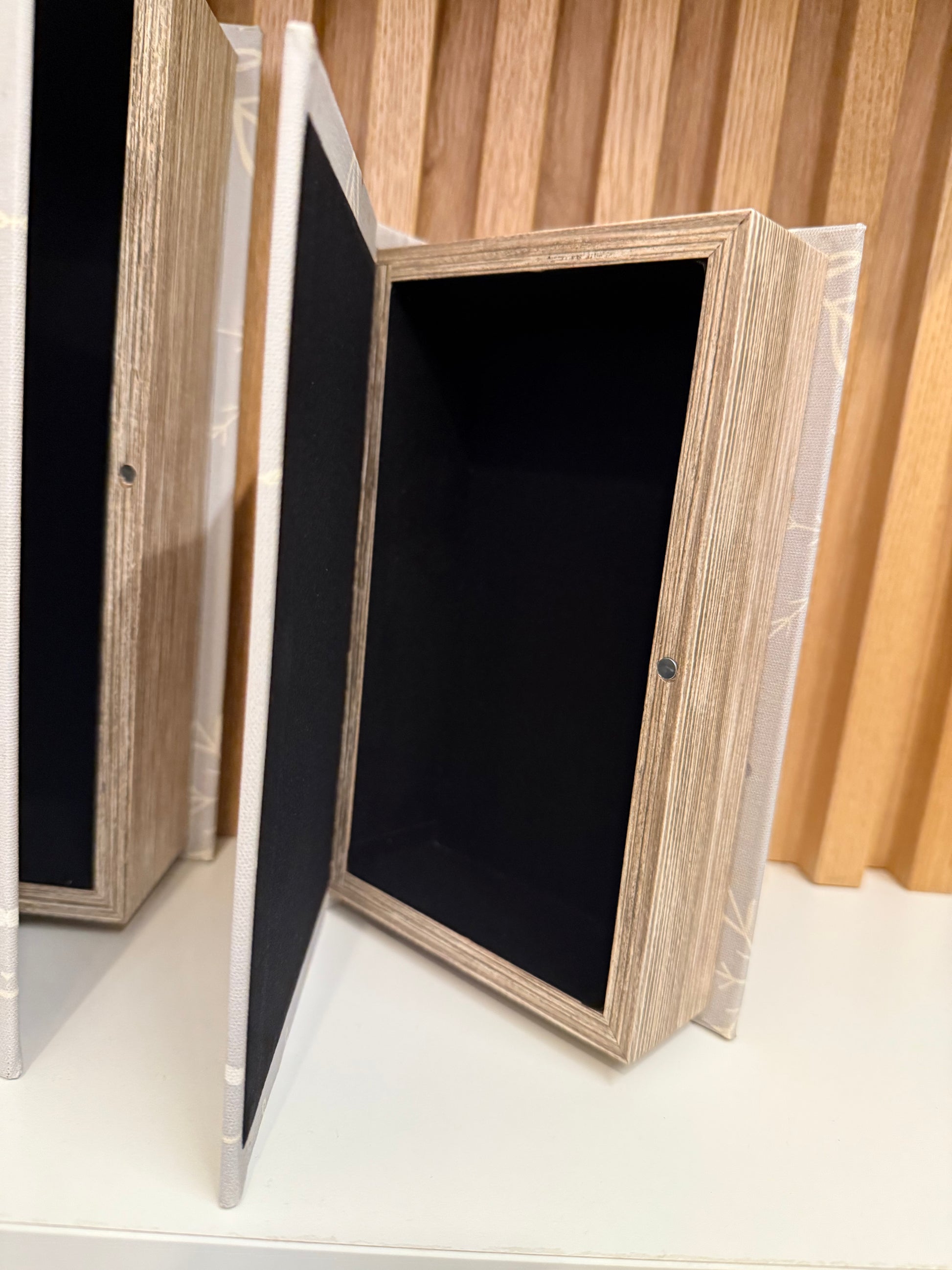 Scatole in MDF con chiusura magnetica e internamente rivestite in velluto nero, esternamente con grafica di fiocchi di neve e stelline. Ideale per dare un tocco di originalità alla tua casa e mantenere sempre l'ordine.