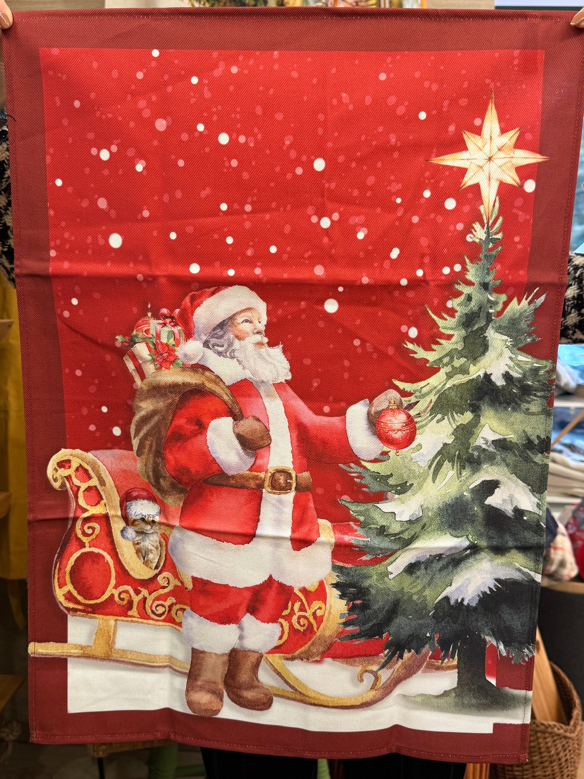 Porta in cucina la tenerezza del Natale con questo strofinaccio realizzato in 100% cotone, resistente e decorato con Babbo Natale e il suo aiutante gattino come protagonisti. Un design perfetto che ricorda l'atmosfera magica di Natale.
