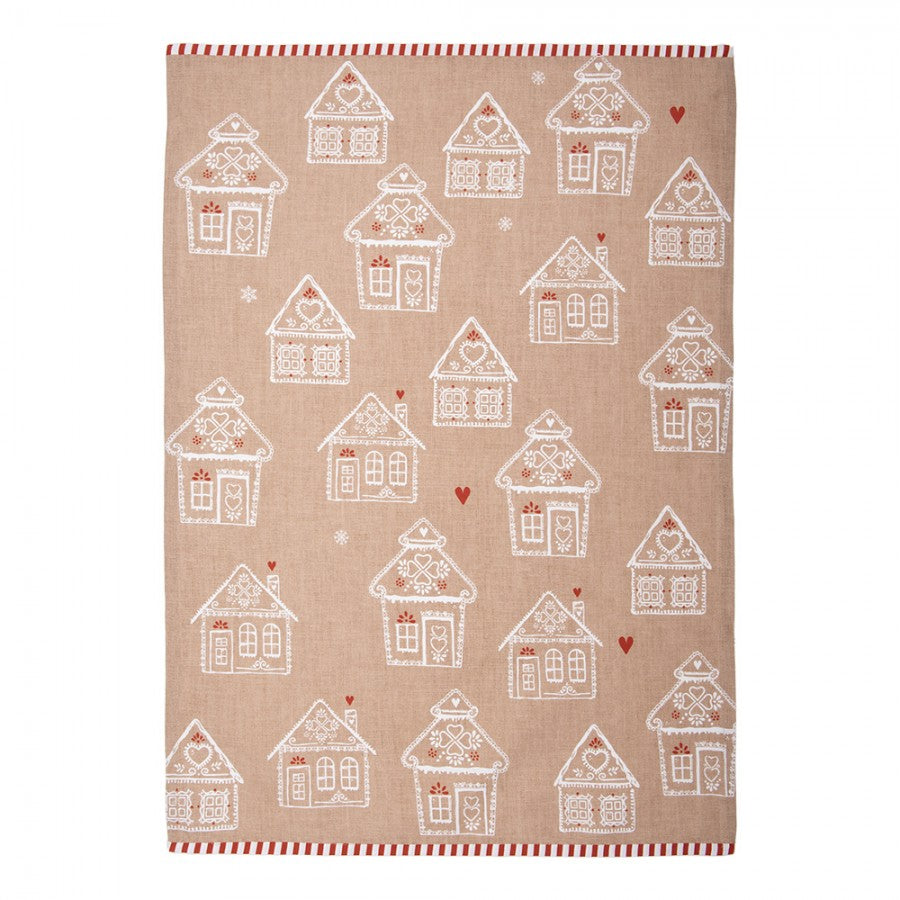 Bellissimo strofinaccio da cucina in 100% cotone beige con un dolcissimo motivo di pan di zenzero che si ripete su tutta la stampa e dotato di pratico gancio per riporlo. Bellissimo da abbinare con la sua linea tessile "Pan di Zenzero".