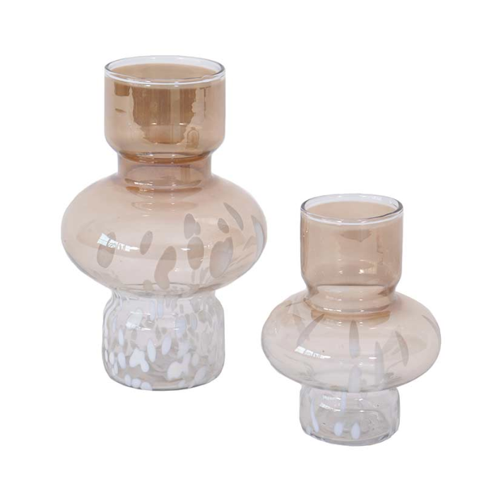 Vaso realizzato in vetro finitura marrone sfumata e dettagli bianchi, disponibile in due misure. Ideale per abbellire il tuo ingresso o per creare un bel centrotavola.