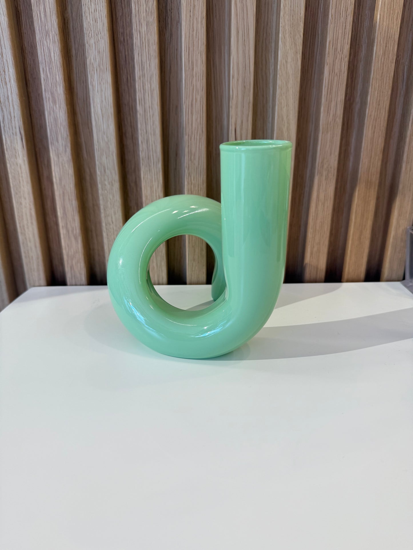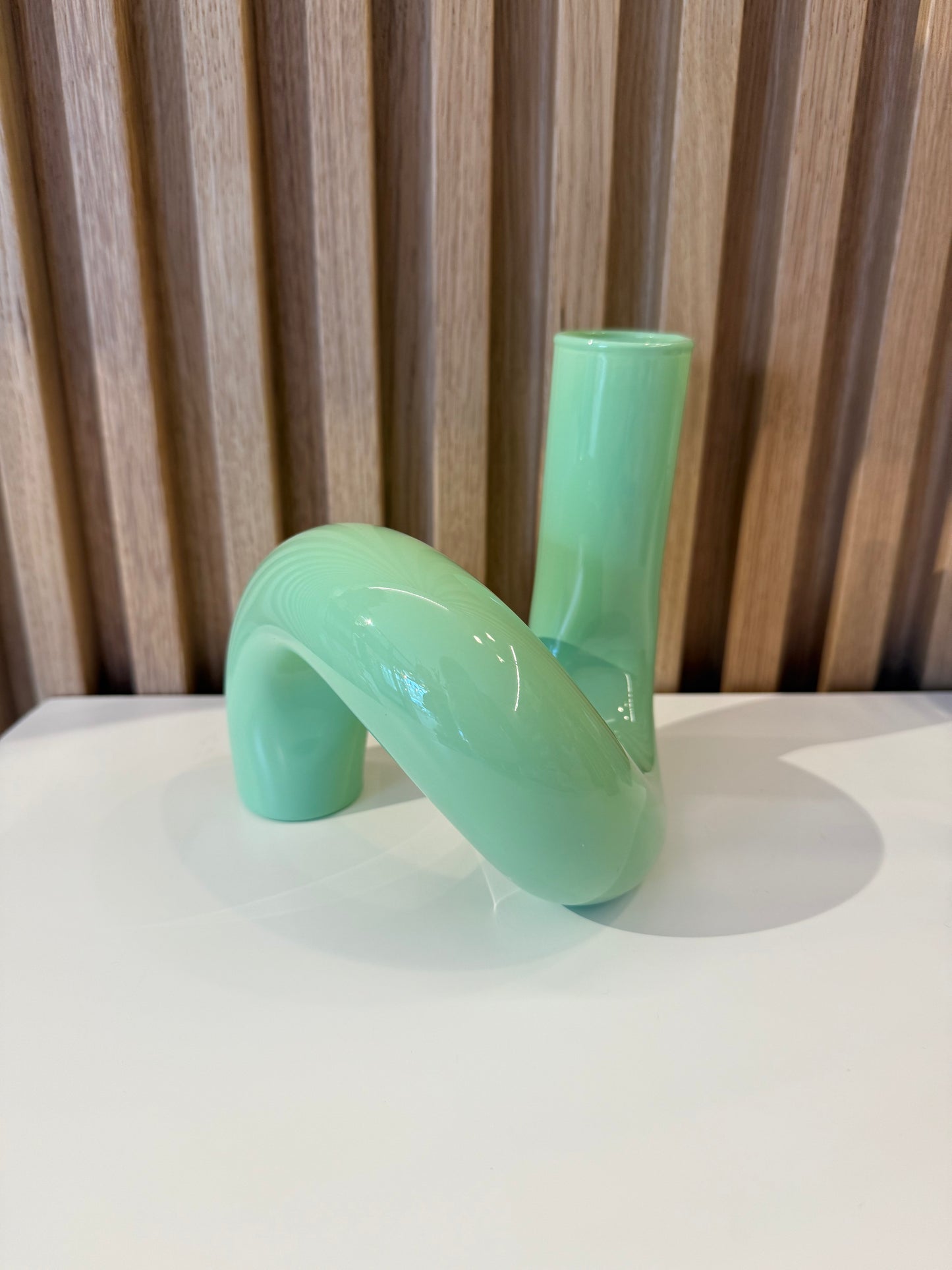 Vaso in vetro dal design originale e dai colori pastello per dare un tocco di primavera. Ideale sia come vaso per fiori o sia come oggetto di decoro per angoli di casa, molto bello se abbinato con il suo candelabro.